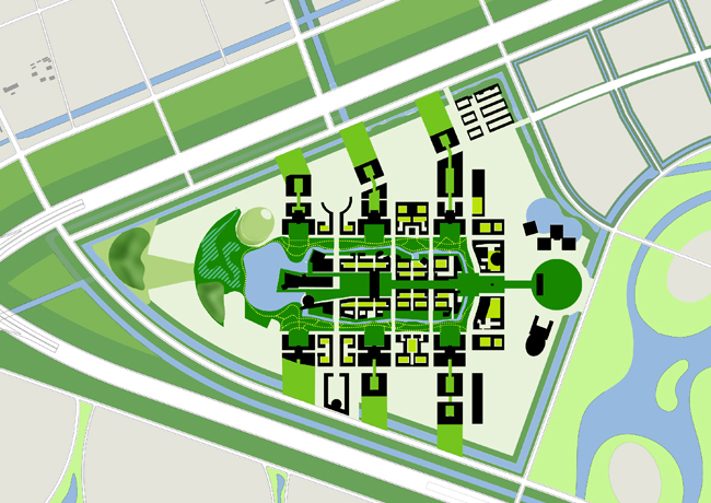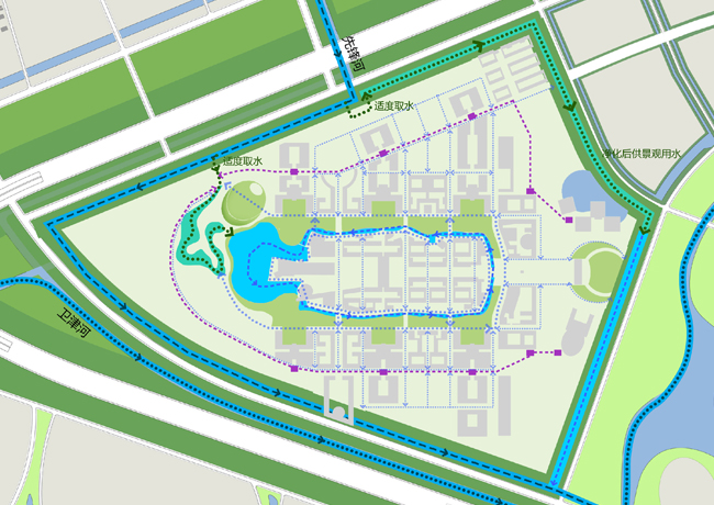 | · | 引入環(huán)形運(yùn)河景觀園廊,強(qiáng)力鏈接校內(nèi)外公園體系 | |